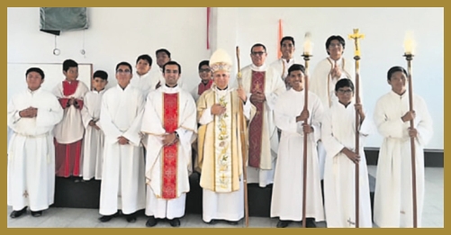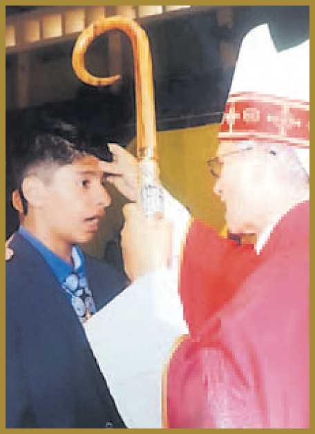 “Confirmación celebrada por el obispo, con el párroco Monteza, el vicario José Echeandía y acólitos que retomamos nuestro servicio”.