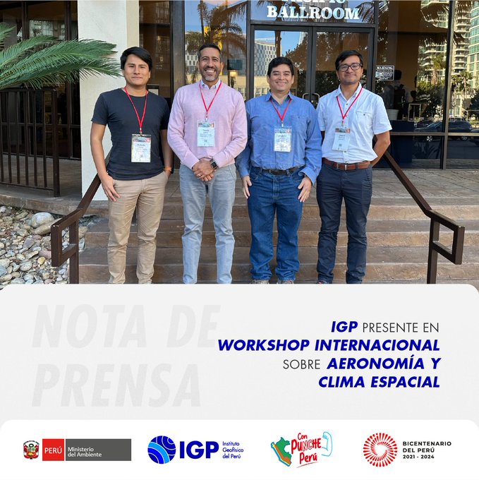 El Ministerio del Ambiente (Minam), a través del Instituto Geofísico del Perú (IGP), participó del 25 al 30 de junio en el workshop sobre Aeronomía y Clima Espacial 2023, que se realizó en San Diego, California. Este evento fue organizado por el Programa de Acoplamiento, Energética y Dinámica de las Regiones Atmosféricas (CEDAR) y los Programas de Cooperación para el Avance de las Ciencias del Sistema Terrestre (CPAESS), juntos con el financiamiento de la Fundación de Ciencias de Estados Unidos de América (NSF).