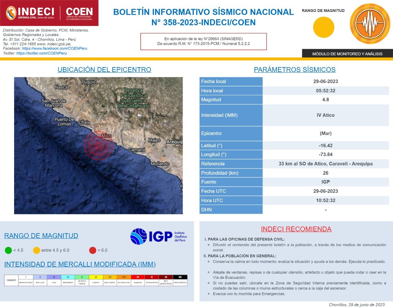 SISMO AL SO DE ATICO, CARAVELI – AREQUIPA