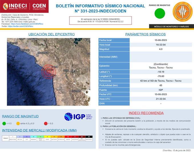 — Centro Sismolgico Nacional (@Sismos_Peru_IGP) June 15, 2023