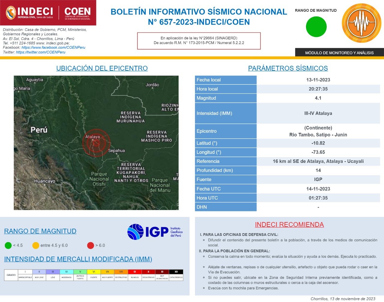 SISMO A 16 KM AL SE DE ATALAYA, ATALAYA – UCAYALI
