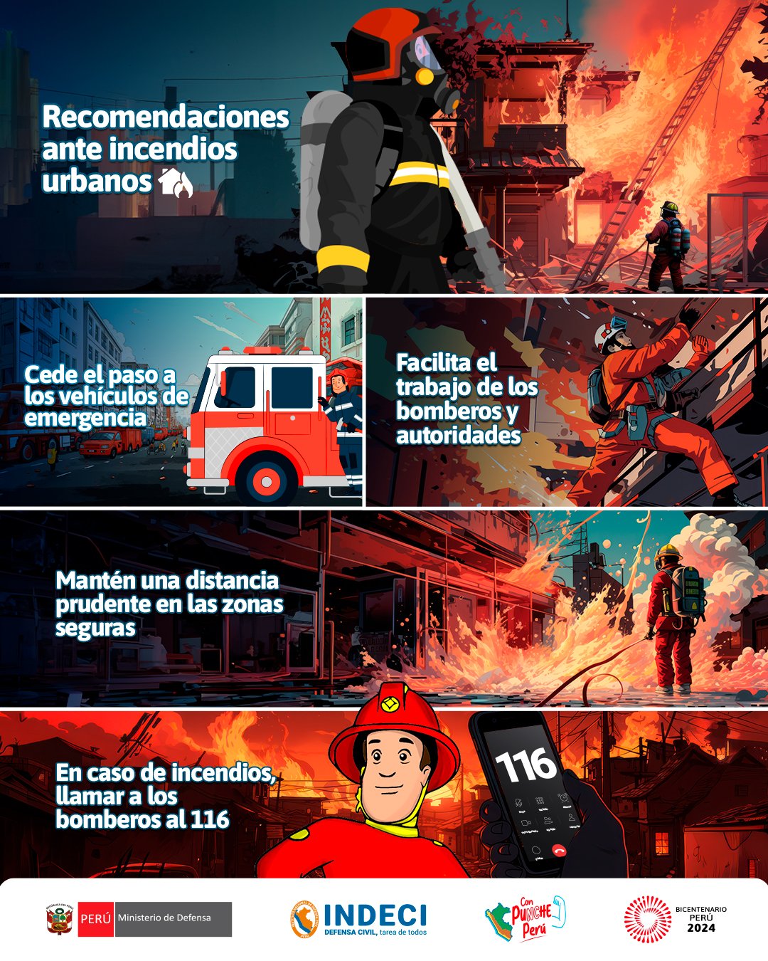 • Llamar a los números de emergencia como: los bomberos 116, Cruz Roja (01) 2660481 y el Sistema de Atención Móvil de Urgencia (SAMU) 106.