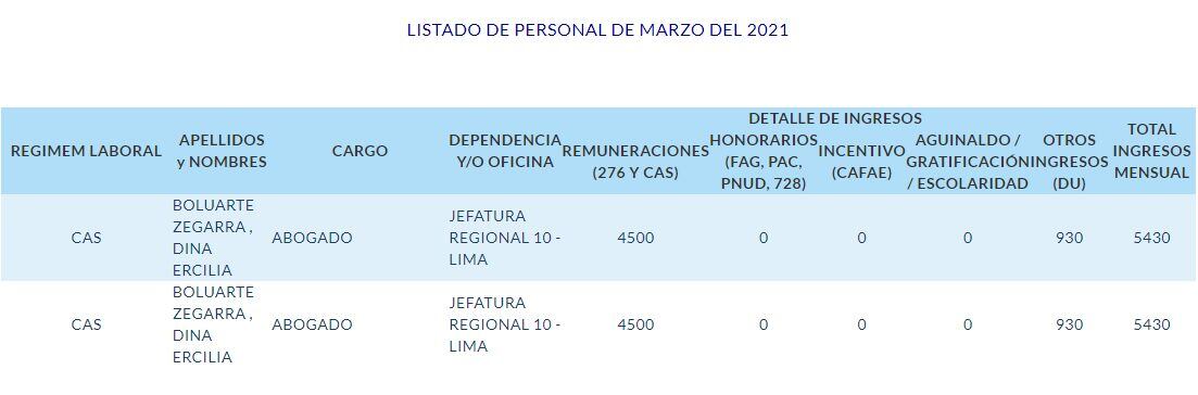 Desde la segunda mitad del 2021, Dina Boluarte presentó varias declaraciones juradas de ingresos, bienes y rentas por ser alta funcionaria del Ejecutivo, primero como ministra de Desarrollo e Inclusión Social (Midis), cargo por el que recibía un sueldo de S/30.000 mensuales, y luego como presidenta de la República, cuyo salario es de S/16.000.