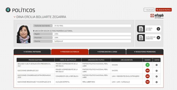 En las hojas de vida que presentó ante el JNE por los procesos electorales del 2018, 2020 y 2021, Boluarte declaró que en el 2017 tuvo ingresos por S/54.000, en el 2018 por S/73.200 y el 2019 por S/66.520.