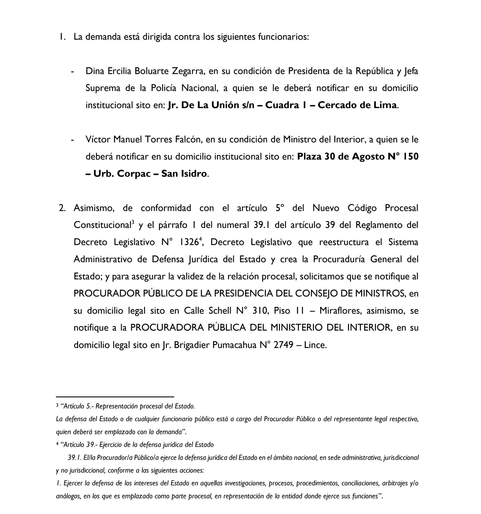 “Solicitamos a vuestro respetable despacho se ordene la reincorporación del suscrito en la situación de actividad como teniente general de la Policía Nacional del Perú y en el cargo de comandante general de la Policía Nacional del Perú con todas las prerrogativas que correspondan”, se indica como pretensión principal.