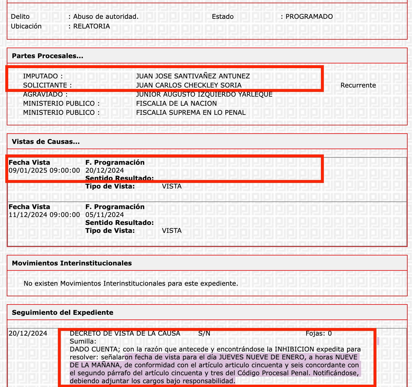 Como se recuerda, Checkley Soria se apartó del caso, luego de conocer que el ministro y él, compartían al mismo estudio de abogados en sus respectivas investigaciones.