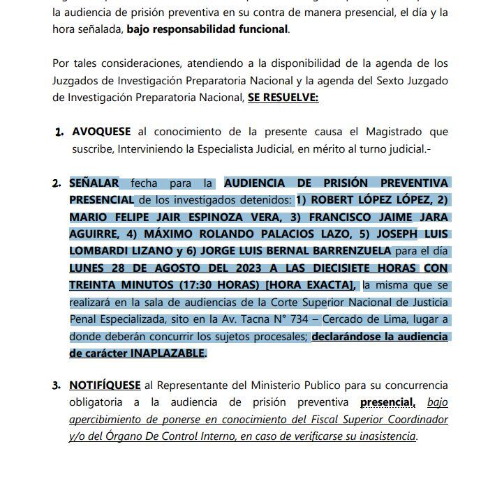 El Octavo Juzgado de Investigación Preparatoria Nacional convocó para este lunes 28 de agosto, a las 17:30 horas, la audiencia de prisión preventiva por el plazo de 36 meses, contra Robert López López y otros 5 investigados por el caso “Los operadores de la Reconstrucción”.