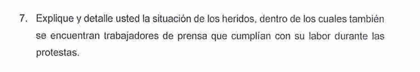 Pregunta 4: Por información de la PNP, el herido ingresó con el diagnóstico de politraumatizado. El ministro Chávarry dice que “el médico legisla de Huancayo aún no se pronuncia sobre las verdaderas causas del origen de la lesión”. Aún no se recibió la historia clínica.