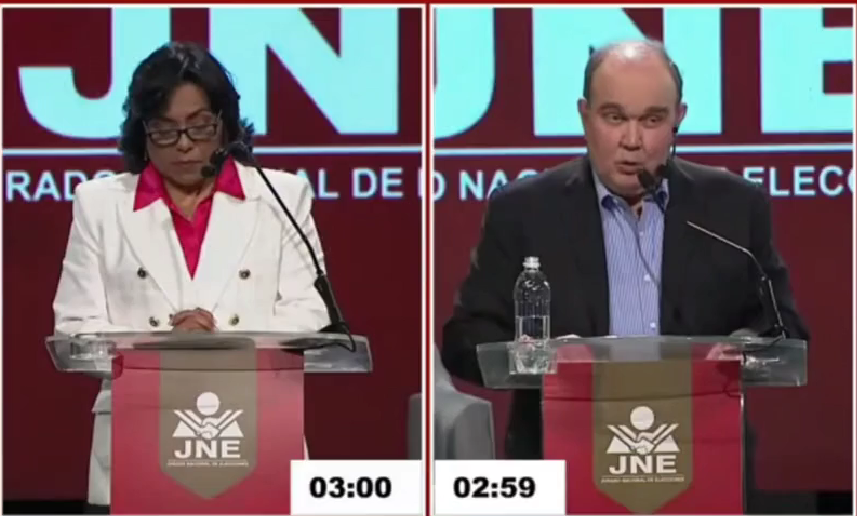 En una de las pocas interacciones entre candidatos en las duplas, María Elena Soto consulta a Rafael López Aliaga sobre propuesta de candidato de Renovación Popular en La Molina, pero el postulante responde que eso lo deja a dicho aspirante.