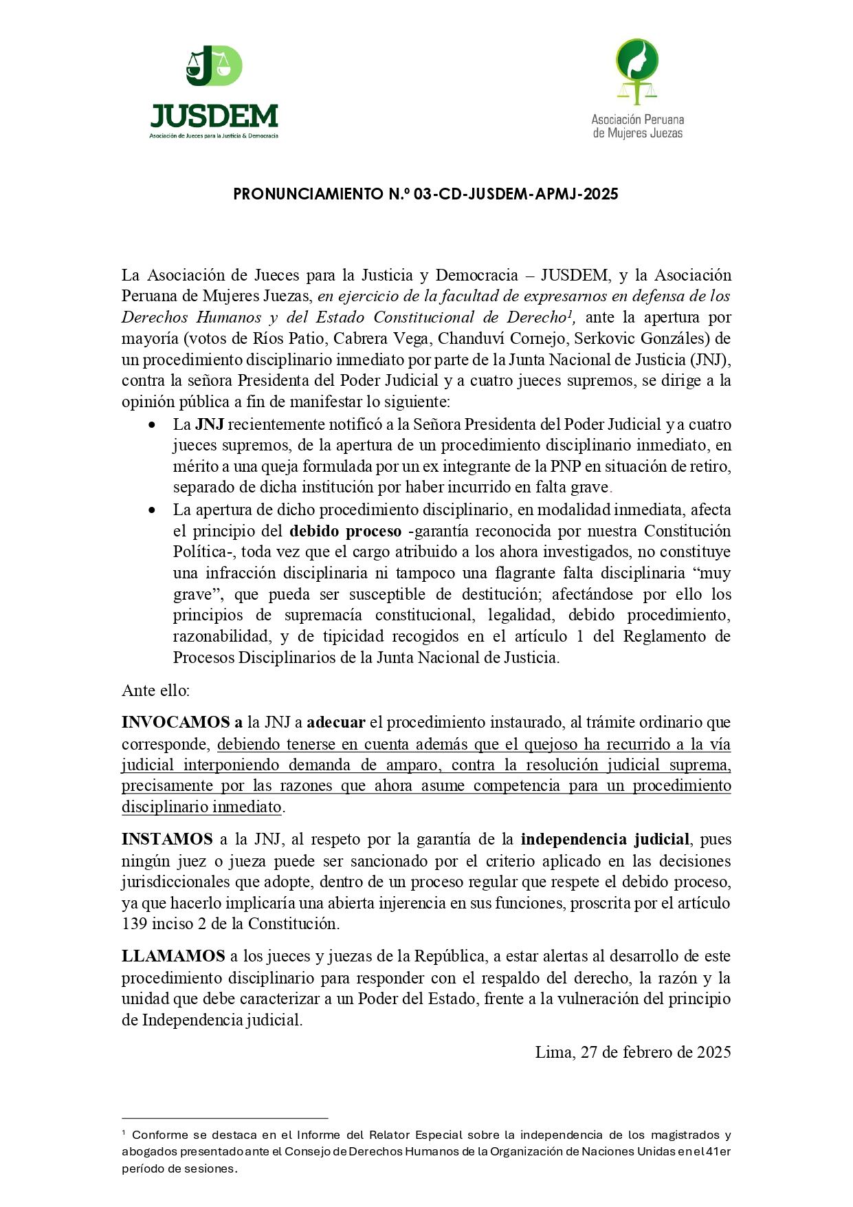 PRONUNCIAMIENTO DE LA ASOCIACIÓN DE JUECES: