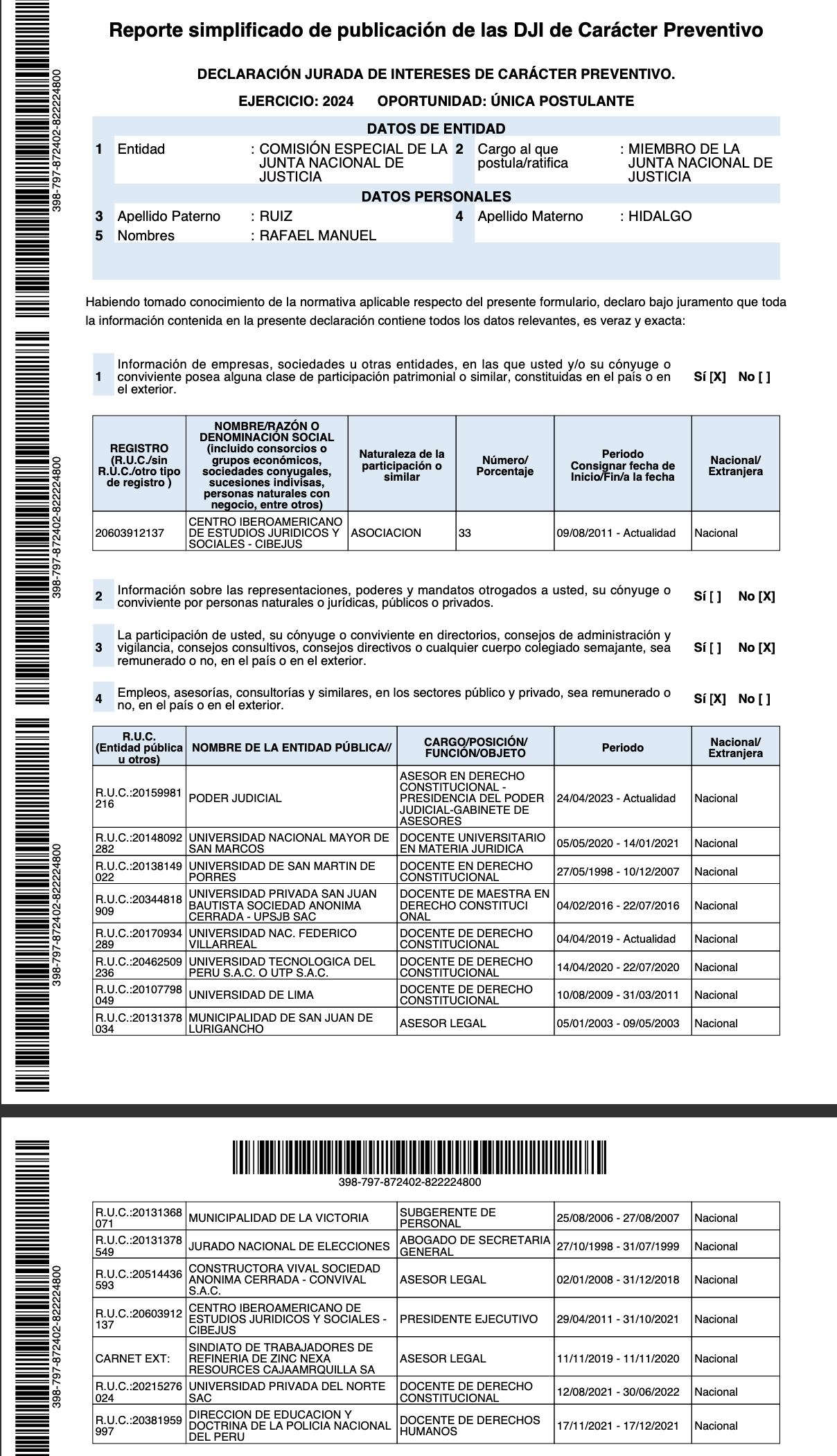 Cabe precisar que el PJ ha remitido un informe a la JNJ confirmando todo el proceso y la sentencia impuesta a Ruiz Hidalgo.