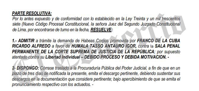 A pesar de que la Corte Suprema ya declaró improcedente su pedido para revisar la sentencia, Humala y su abogado, Ricardo Franco de la Cuba, sustentaron ante la Segunda Sala Constitucional de Lima un recurso de habeas corpus para que se anule esa resolución el último miércoles.