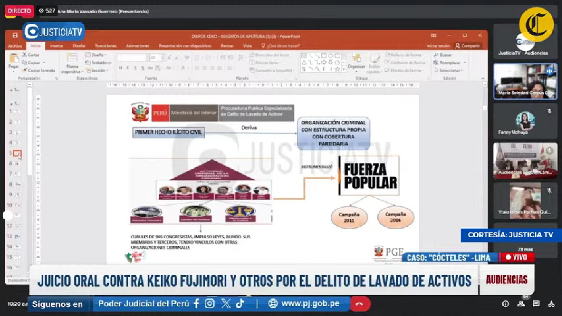 Siguen más acusados: pide 20 años de prisión para Antonieta Gutiérrez y Ana Matsuno. En ese momento, el juzgado dispone que la fiscalía continúe su exposición mañana en audiencia virtual y que los alegatos de las defensas ya serán el lunes en audiencia presencial.