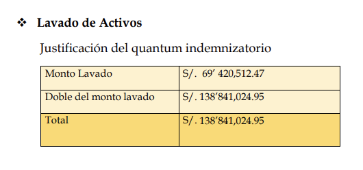 Por el delito de obstrucción a la justicia, procuraduría pide reparación civil de S/ 305,856, el doble de lo cobrado por abogados al partido Fuerza Popular. Finalmente, por falsedad genérica/falsa declaración, pide S/ 9'692,659 (50% de los montos reportados a ONPE).