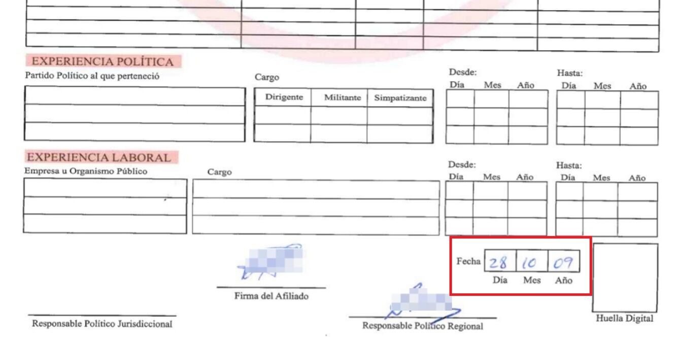 Consultado por El Comercio, el secretario general de APP, Luis Valdez, informó que su agrupación respondió al JNE y adjuntó la ficha de afiliación de Márquez, presuntamente firmada por ella y con huella digital.