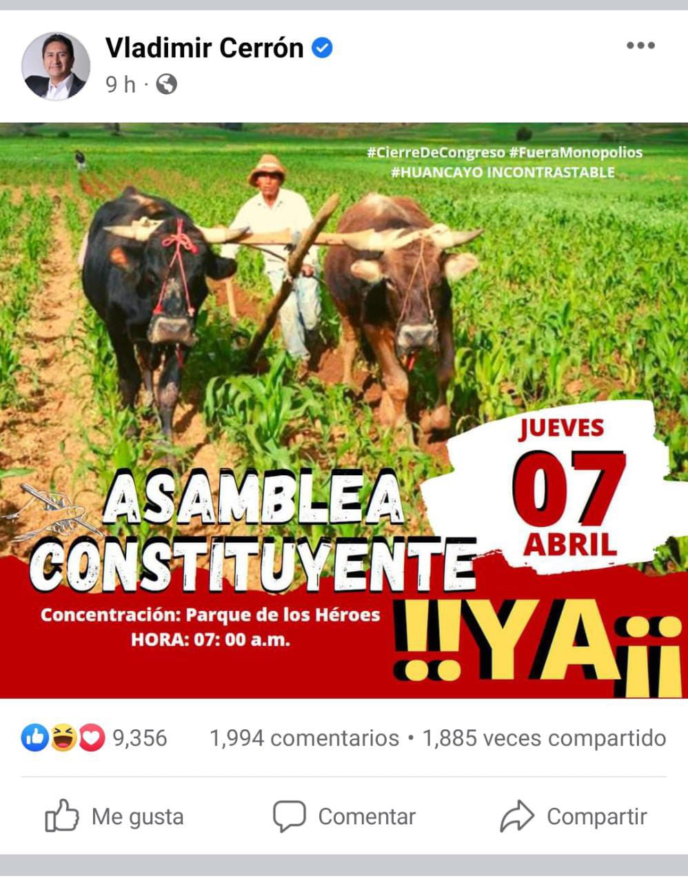 “No le vamos a permitir, señor presidente, que esté rodeado de los Dinámicos del Centro, del señor Cerrón que ha hecho tanto daño a la región Junín, no queremos cerca del poder, porque así como perjudicó a Junín, no queremos que perjudique a todo el Perú”, agregó.