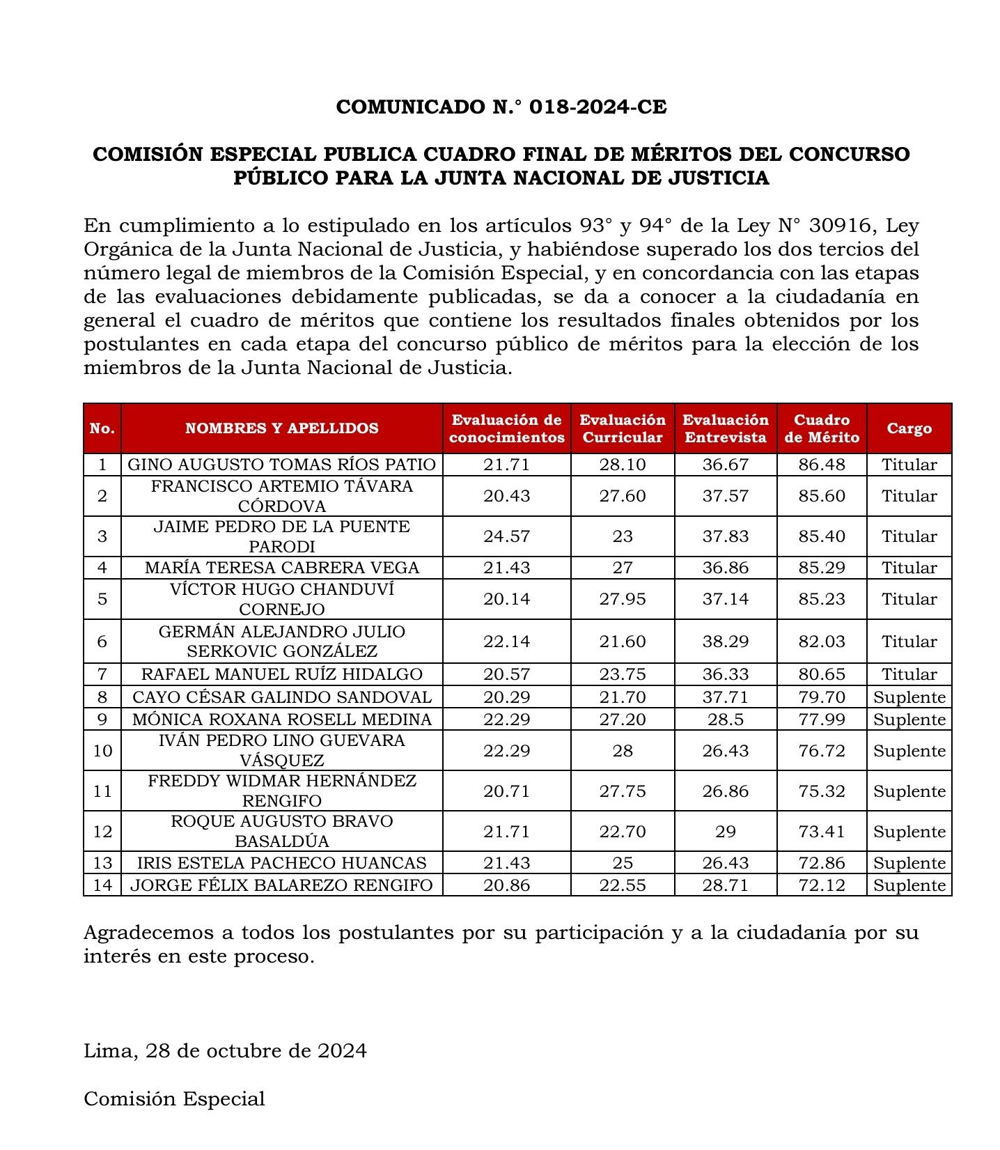 De ser así, Távara Córdova será reemplazado en mayo del 2026 por alguno de los concursantes que quedaron en condición de “suplentes” según el cuadro de méritos.
