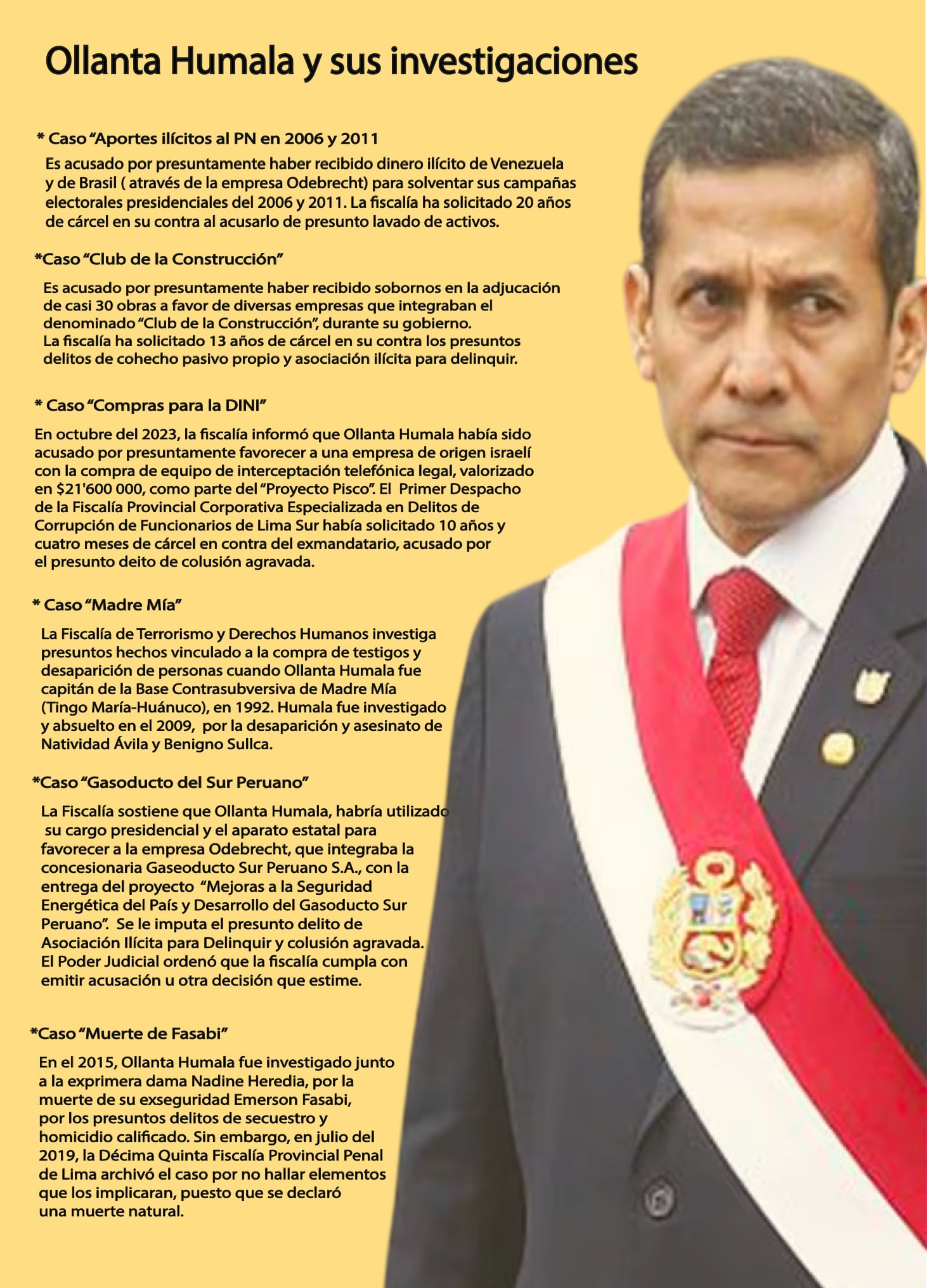 Con ello, luego de dejar el cargo presidencial, Humala Tasso se sumaría a la investigación por presunto lavado de activos junto a su esposa Nadine.