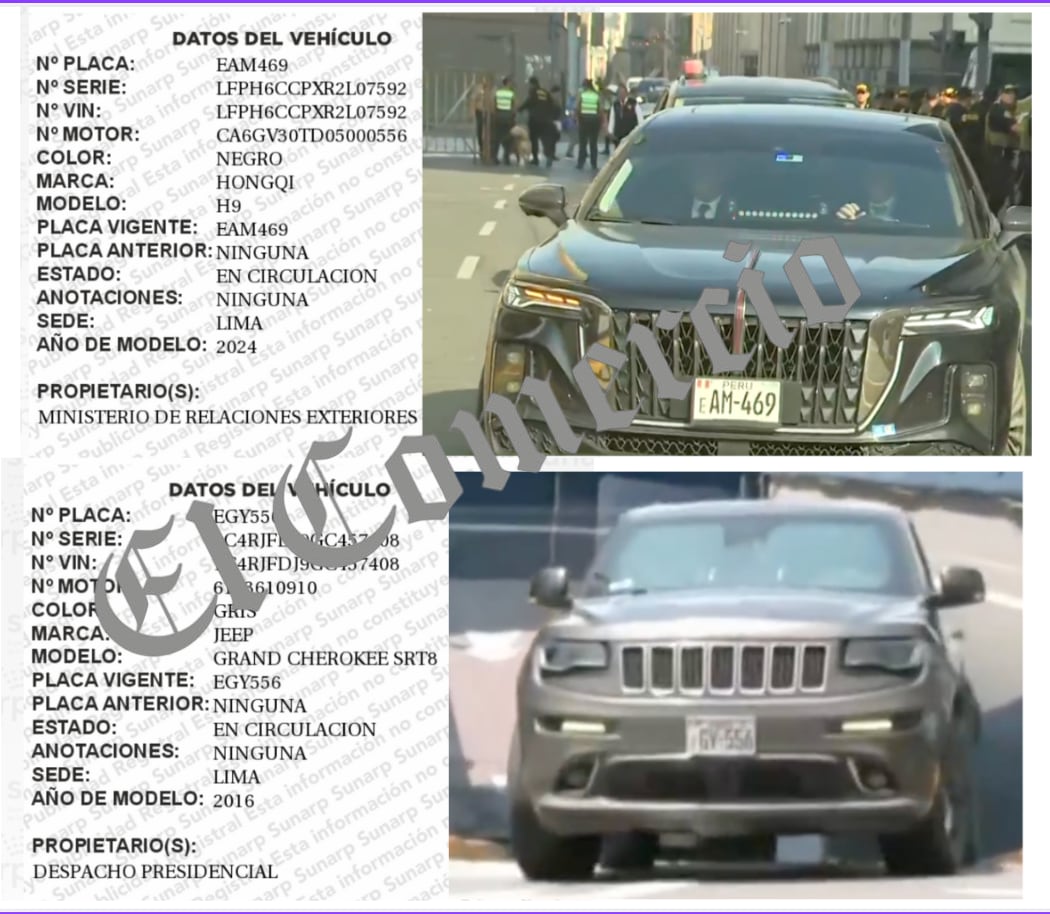 La diligencia se prolongó por casi cinco horas, ya que Boluarte Zegarra se retiró minutos después de la 1 de la tarde, a bordo de un segundo vehículo; esta vez una camioneta asignada al Despacho Presidencial.