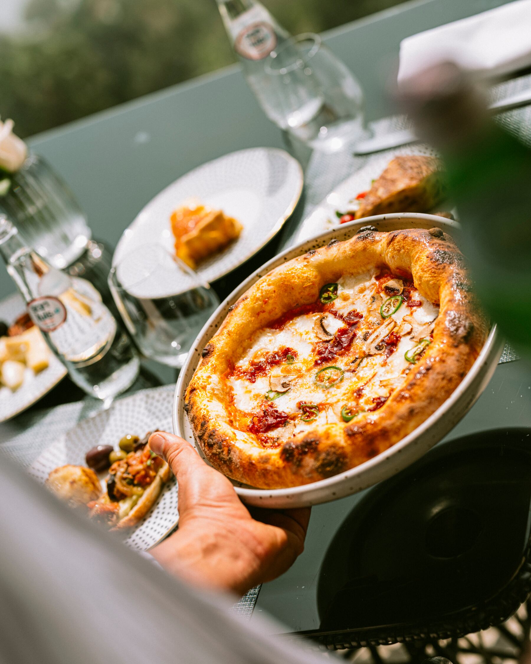 Entre los principales atractivos están dos estaciones en las que se preparan comida al momento. Por un lado, la de huevos benedictinos, ese desayuno elegante, contundente y completo que incluye una salsa holandesa, pan delicioso y alguna carne curada como salmón o jamón. Por el otro, para los amantes de las pizzas, ofrecen una estación en la que se preparan al momento, con ingredientes como embutidos, queso de calidad y otros toppings a elegir.