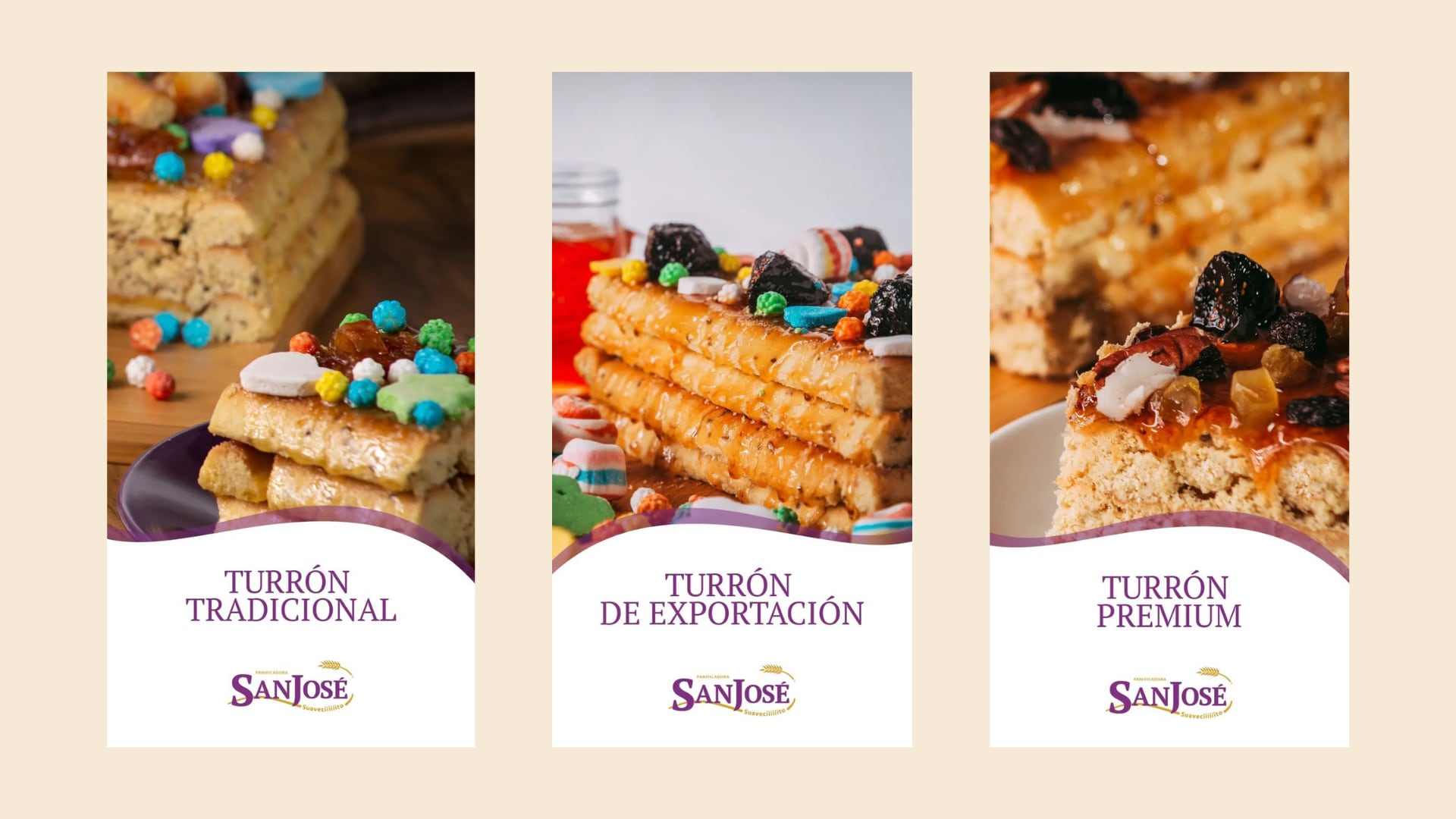 Turrones San José cuenta con tres tipos de presentaciones del postre: el turrón tradicional, el de exportación y el premium. Los precios varían según el tamaño: