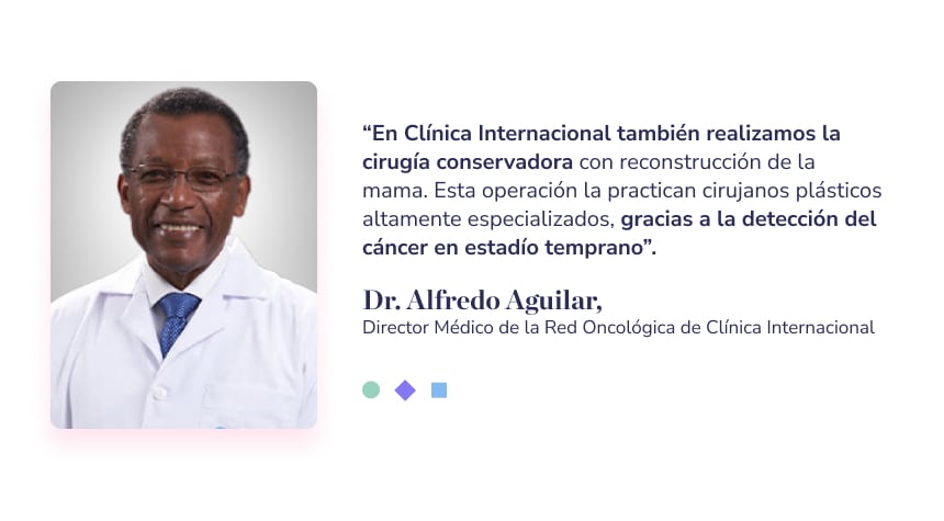 Ahora, para luchar contra el cáncer de mama con mayor efectividad son necesarios los tratamientos más avanzados en este tipo de cáncer. De hecho, el Dr. Alfredo Aguilar, Director Médico de la Red Oncológica de Clínica Internacional, revela que cuentan con inhibidores de ciclina, medicamentos que detienen la división y multiplicación de las células cancerígenas y, próximamente, adquirirán anticuerpos conjugados, usados en el mundo principalmente para tratar tumores metastásicos. “También disponemos de anticuerpos monoclonales en terapias biológicas para pacientes con HER-2, componentes que actúan sobre proteínas específicas, evitando que cumplan la función de hacer crecer los tumores”, destaca Aguilar.