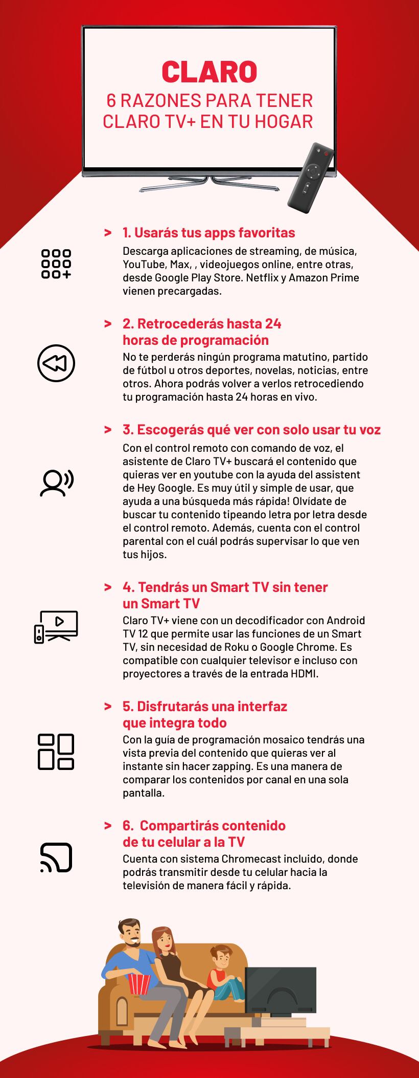 No esperes más y disfruta de la revolución que Claro está trayendo a tu televisor a través de Claro TV+.