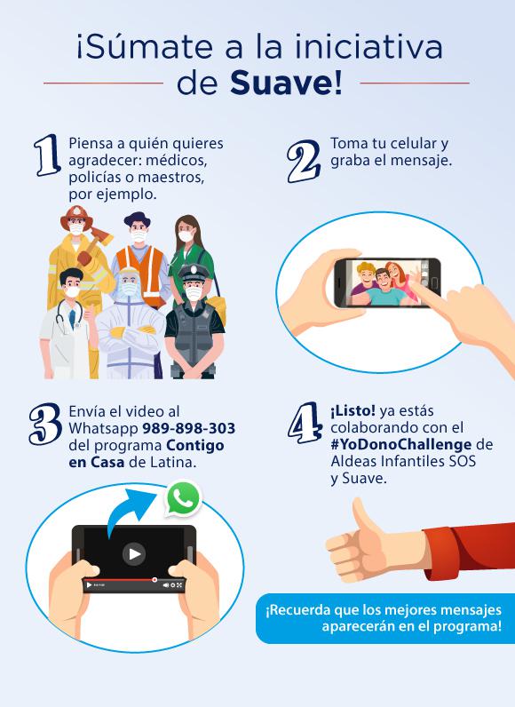 Los videos pueden enviarse hasta el viernes 8 de mayo al WhatsApp 989-898-303. Y es que, con esta iniciativa de Suave, todos ganan. La familia se divierte, los trabajadores se motivan y los niños de Aldeas Infantiles SOS continúan forjándose un mejor futuro.