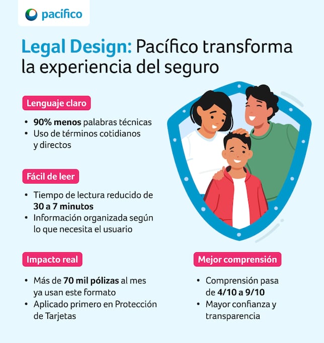 Con esta iniciativa, Pacífico Seguros refuerza su compromiso por una comunicación más clara y una experiencia centrada en las personas. Conoce sobre el nuevo formato de pólizas y el enfoque de Legal Design en www.pacifico.com.pe.