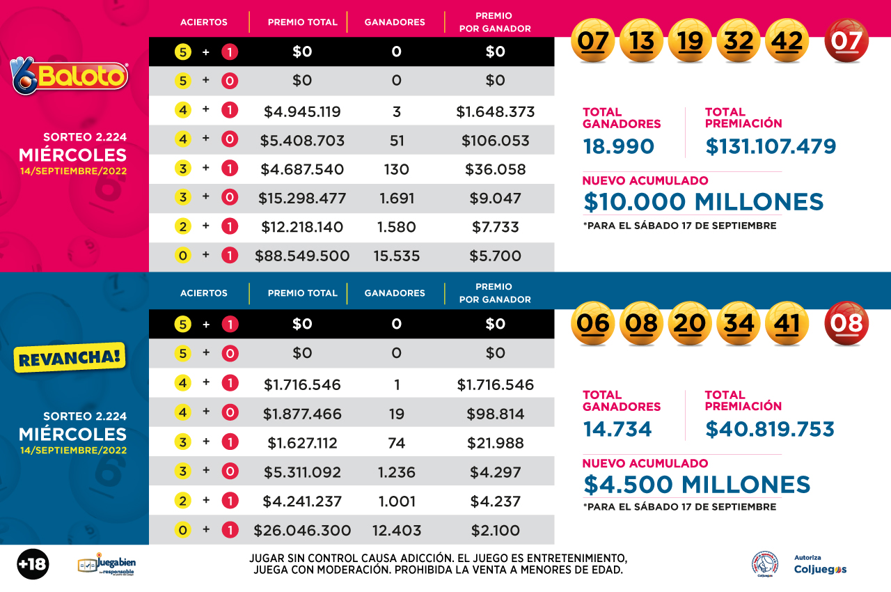 BALOTO | Sorteo del miércoles 14 de setiembre.