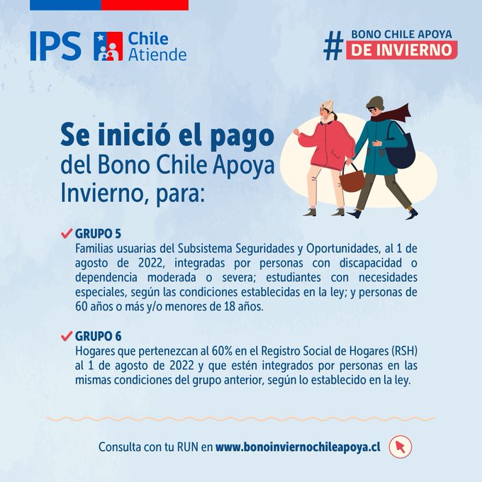 BONO CHILE APOYA DE INVIERNO | Ya está disponible la segunda nómina de pago del Bono Invierno. Consulta con tu RUT aquí.
