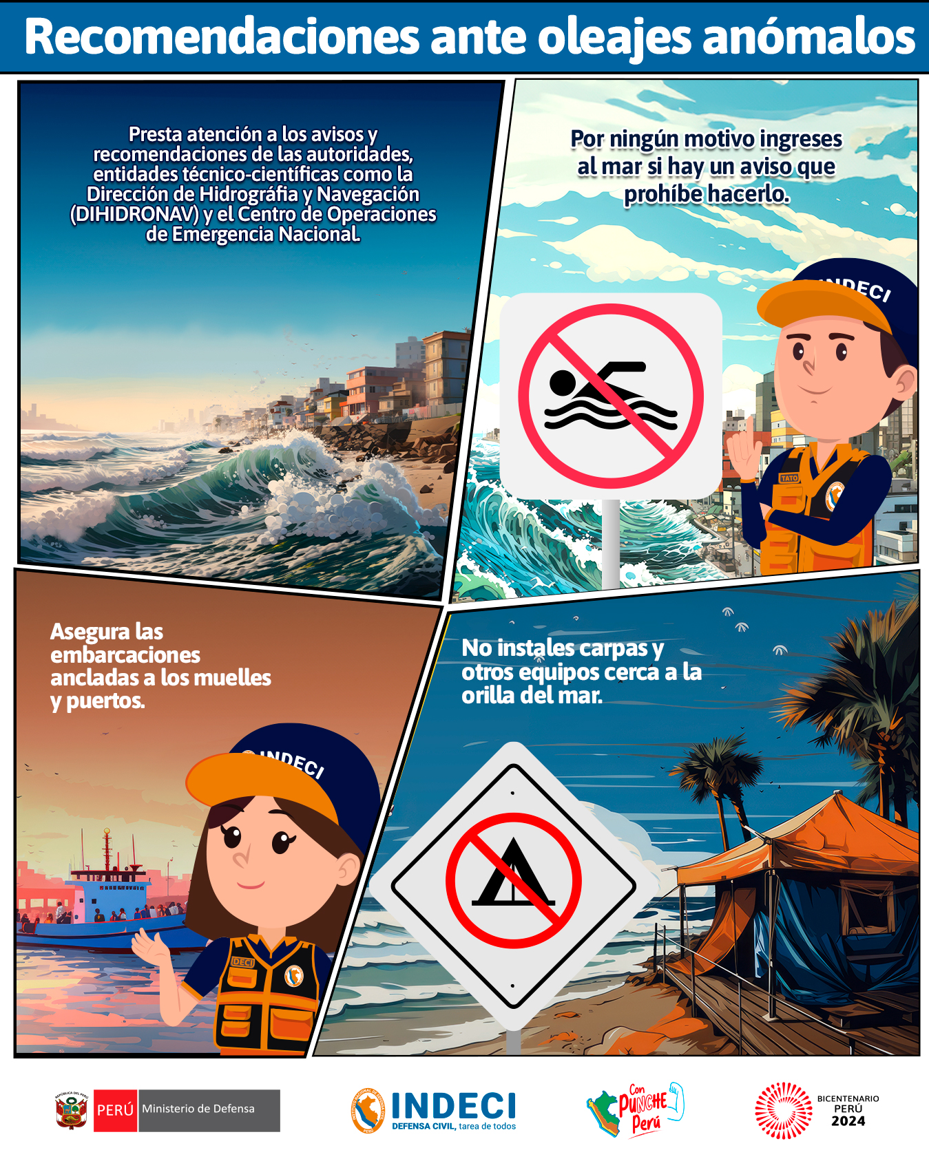 Ante este panorama, el INDECI exhorta a las autoridades locales continuar con la ejecución de sus planes de contingencia, preparar su sistema comunitario de alerta temprana, prever la organización de la población y disponer el monitoreo permanente de los ríos para tomar medidas o alertar evacuación.