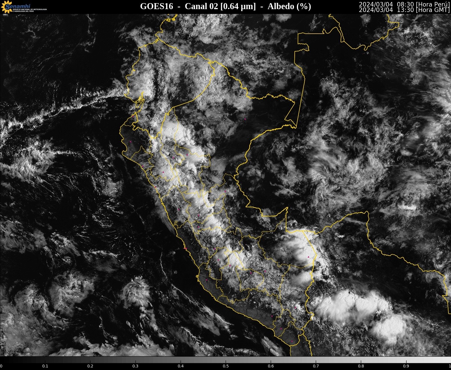 Madre de Dios, Ayacucho, Pasco, Huánuco, San Martín y Amazonas mantienen lluvia localizada de moderada intensidad y descargas eléctricas. Estación Pichari (Ayacucho) registró un acumulado de 44 mm en las últimas horas. Se espera que estas condiciones persistan