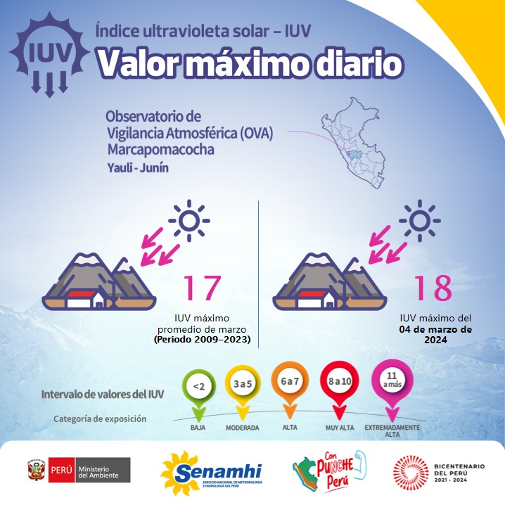 El lunes 04 de marzo, se esperan acumulados, próximos a los 30 mm/día en la sierra norte, alrededor de los 18 mm/día en la sierra centro y valores por encima de los 22 mm/día en la sierra sur.