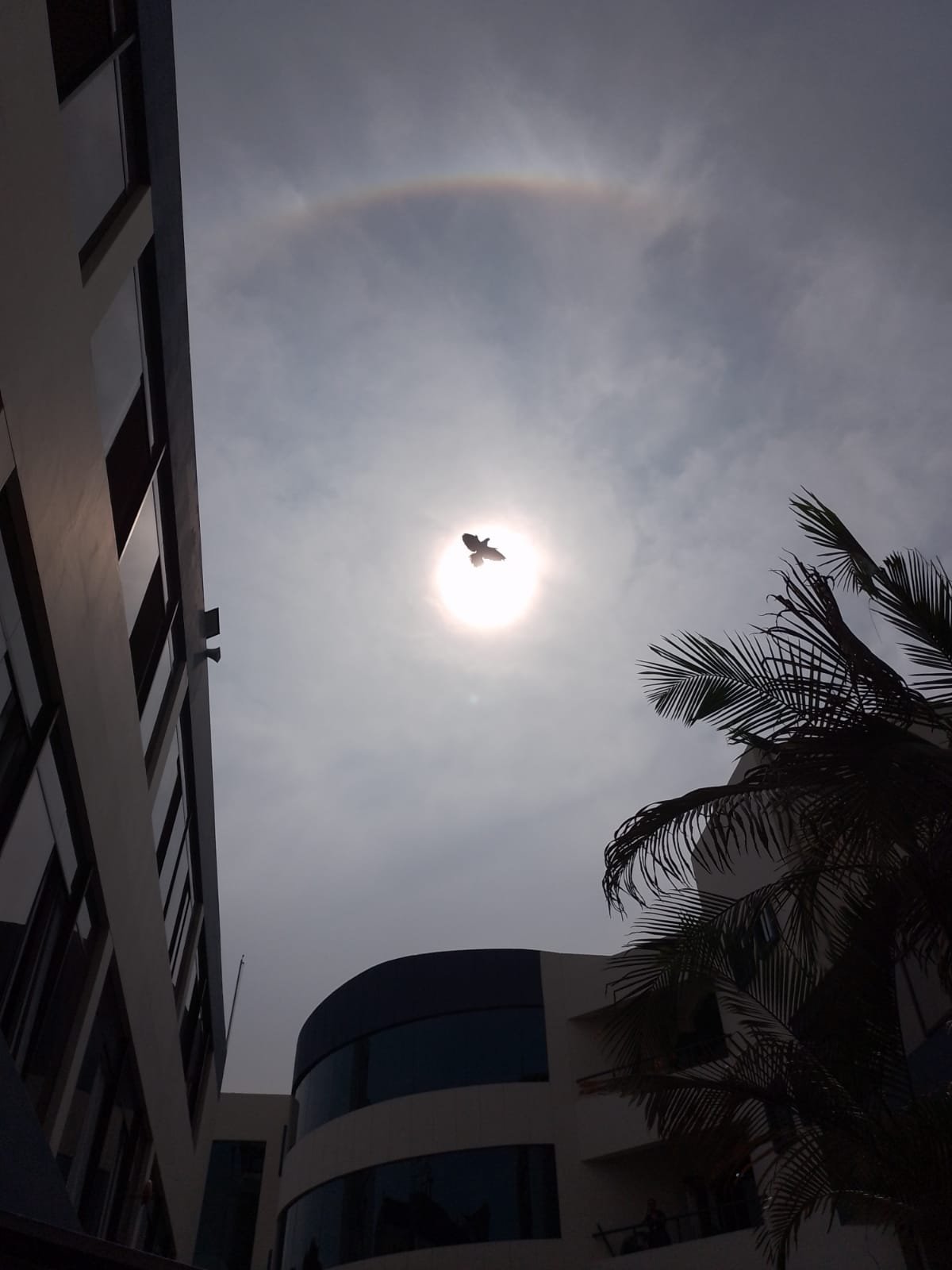 Este fenómeno óptico, es la descomposición de la luz solar a través de cristales hielo que existen en la nubes tipo cirrus