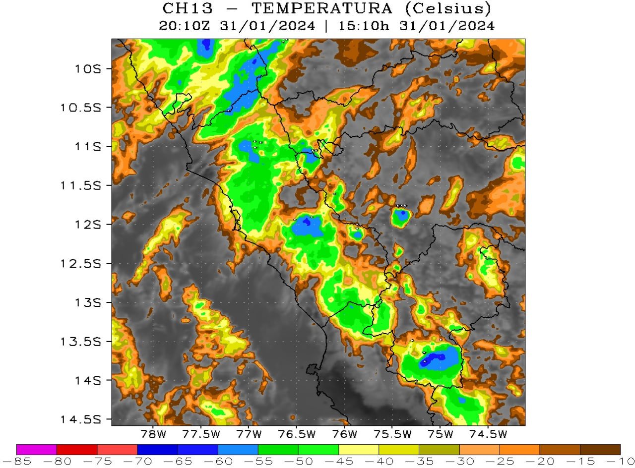 Selva: se presentan condiciones de mal tiempo, principalmente en la selva norte y centro (Loreto, Ucayali, Pasco y Junín) con lluvia de ligera a moderada intensidad que se mantendría durante las próximas horas.