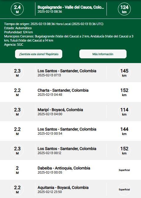 — Servicio Geológico Colombiano (@sgcol) February 14, 2025