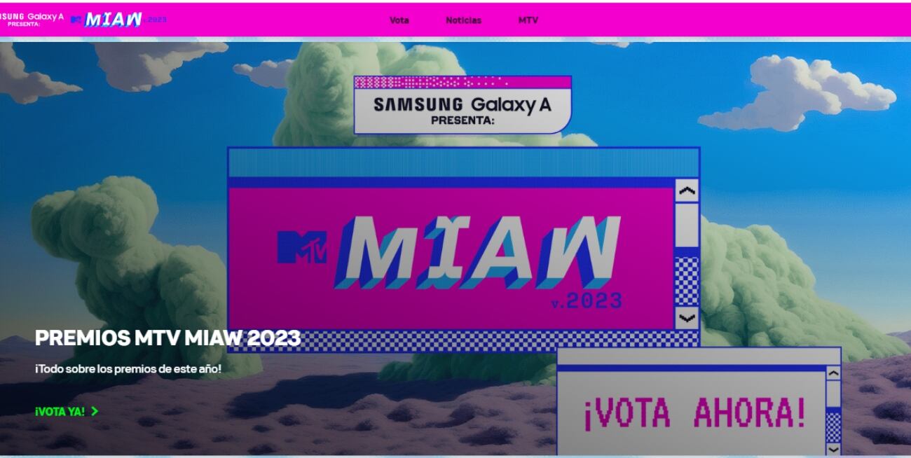 - Ingresa a la página web de los MTV Miaw 2023: (https://miaw.mtvla.com/vota/)