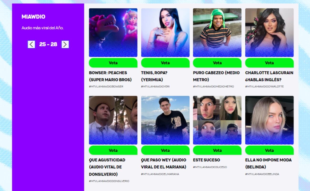 - Cada clic en el artista es un voto que se irá acumulando hasta el día de la premiación en los MTV Miaw 2023.