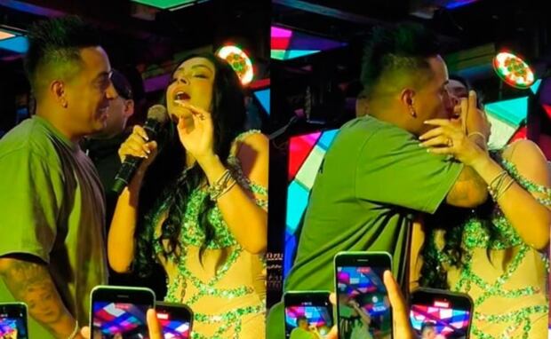 En el clip, que fue compartido por el conductor de televisión, el futbolista se muestra muy zalamero con la cantante de cumbia, e incluso no duda en abrazarla por detrás mientras ambos cantan tiernamente el tema ‘Simplemente amigos’. Además, la también influencer, de 36 años, se queda mirando fijamente al jugador de Cienciano, logrando cautivarlo. Sin embargo, el locutor de radio se percata de la situación y voltea la cámara de su celular, expresando: “No sean sapos”, dejando entrever la posibilidad de un beso.