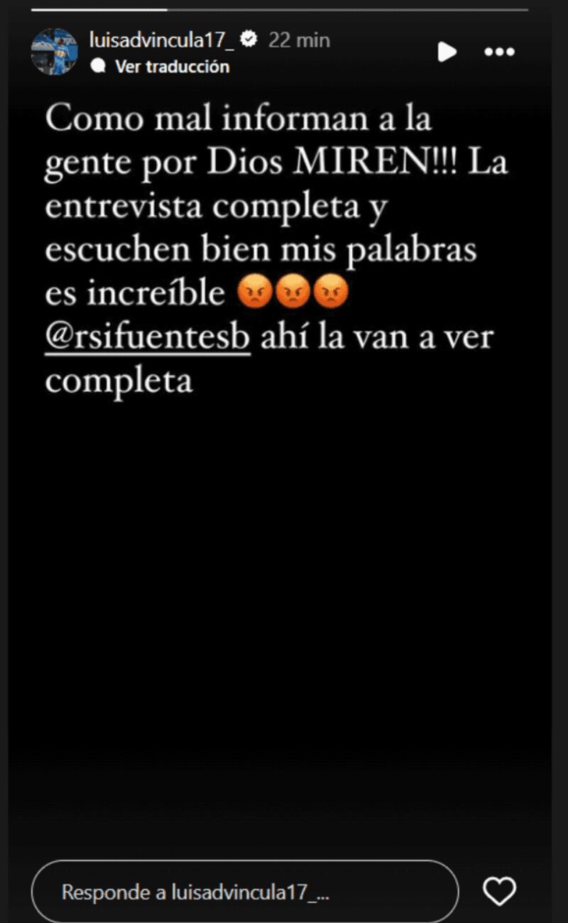 Sin embargo, debido a estas declaraciones, en la cual algunas personas tergiversan la información sobre su salida definitiva del fútbol, Advíncula tomó la decisión de utilizar sus historias de Instagram para instar a su público a que presten atención a sus confesiones y así evitar malos entendidos.