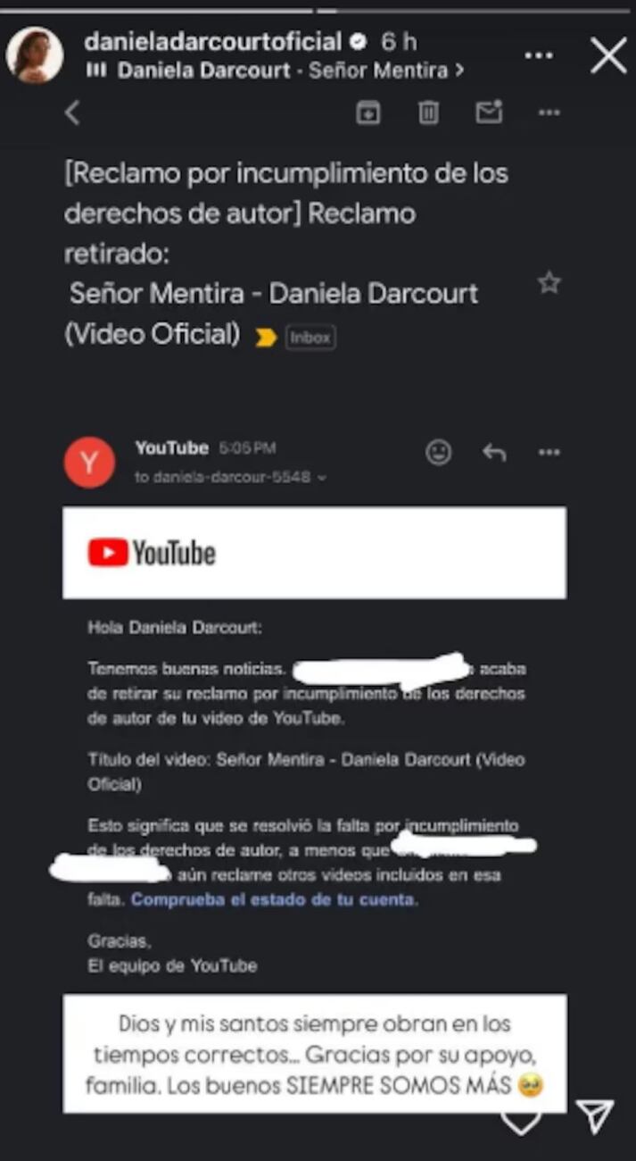 ¿QUÉ DIJO DANIELA DARCOURT SOBRE EL RETIRO DE SU CANCIÓN “SEÑOR MENTIRA” DE YOUTUBE?
