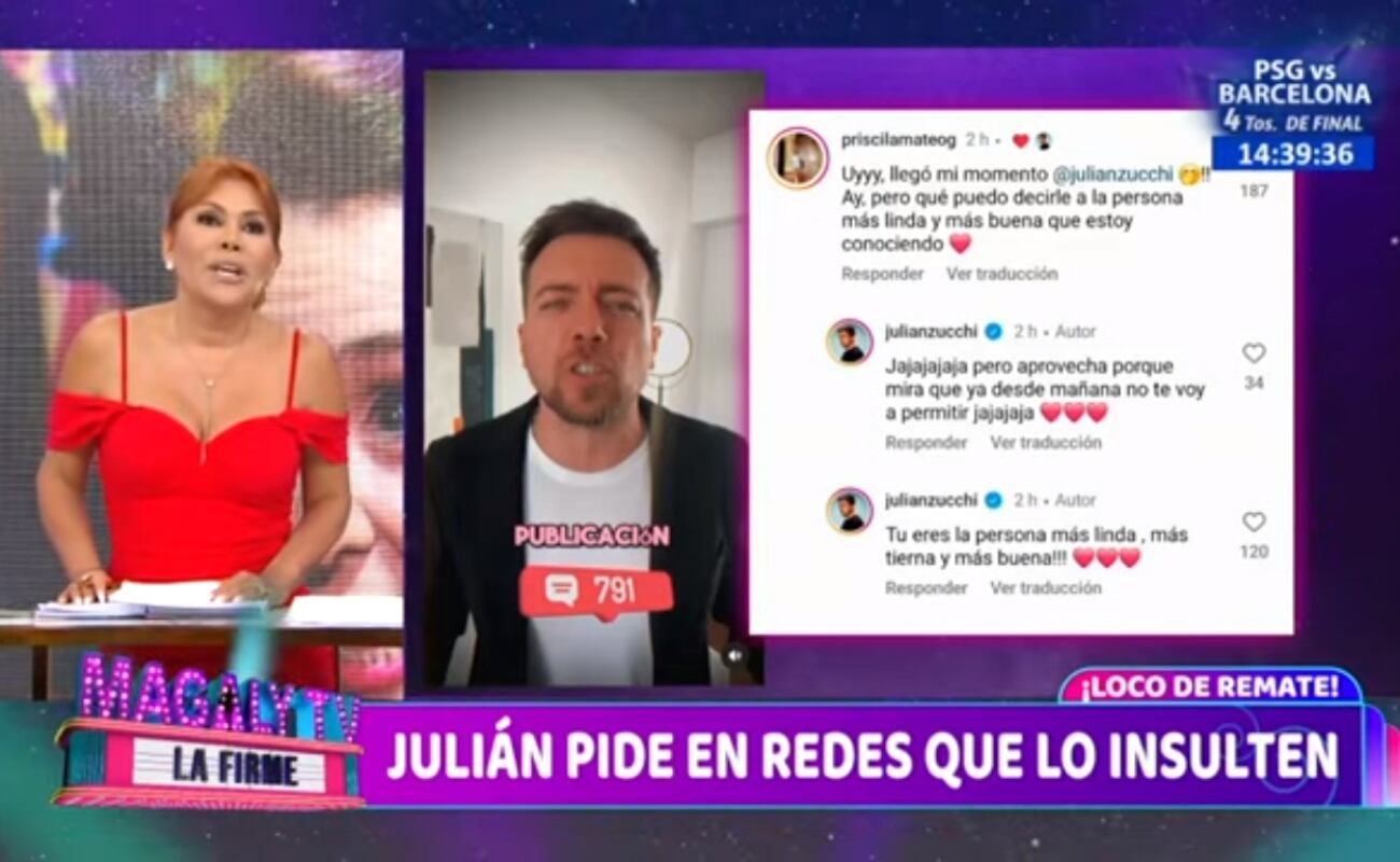 Luego de que Magaly Medina se percatara de que su reportera le envió un emotivo mensaje a través de sus redes sociales a Julián Zucchi, ella utilizó su programa para arremeter con el argentino. La figura de ATV también aprovechó para advertir a Priscila Mateo de que los sentimientos del exchico reality no son reales, por lo que solo sería cuestión de tiempo para que se diera cuenta.