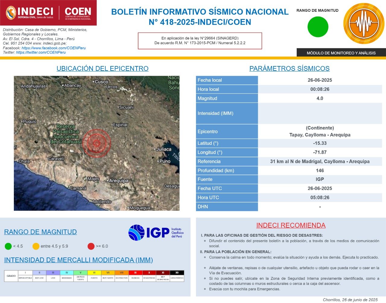 La entidad encargada de llevar el registro de cada temblor en el país es el Instituto Geofísico del Perú (IGP). Asimismo, entrega información oficial cada vez que ocurre un sismo mediante sus cuentas de redes sociales.