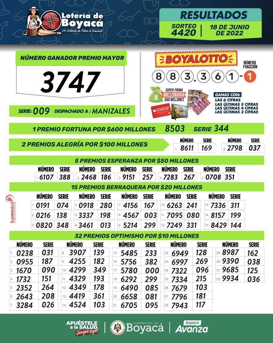 Revisa aquí los resultados del sorteo 4421 de la Lotería de Boyacá y descubre si fuiste uno de los afortunados premiados.