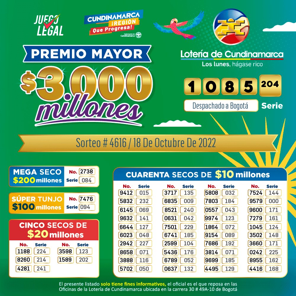 LOTERÍA DE CUNDINAMARCA | ¡Son 3.000 millones del Premio Mayor!