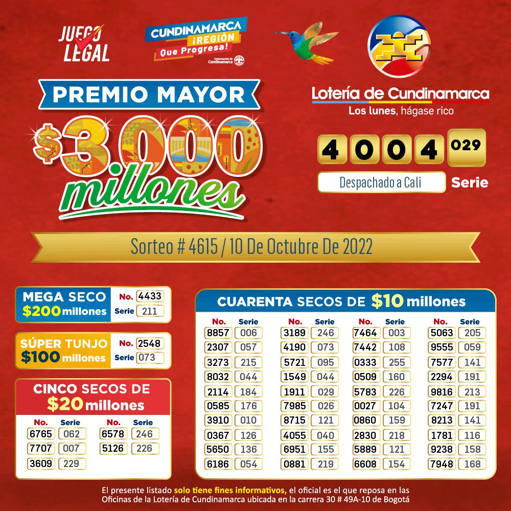Conoce los resultados de la Lotería de Cundinamarca 4615, una de las más populares de Colombia y descubre si eres el ganador.