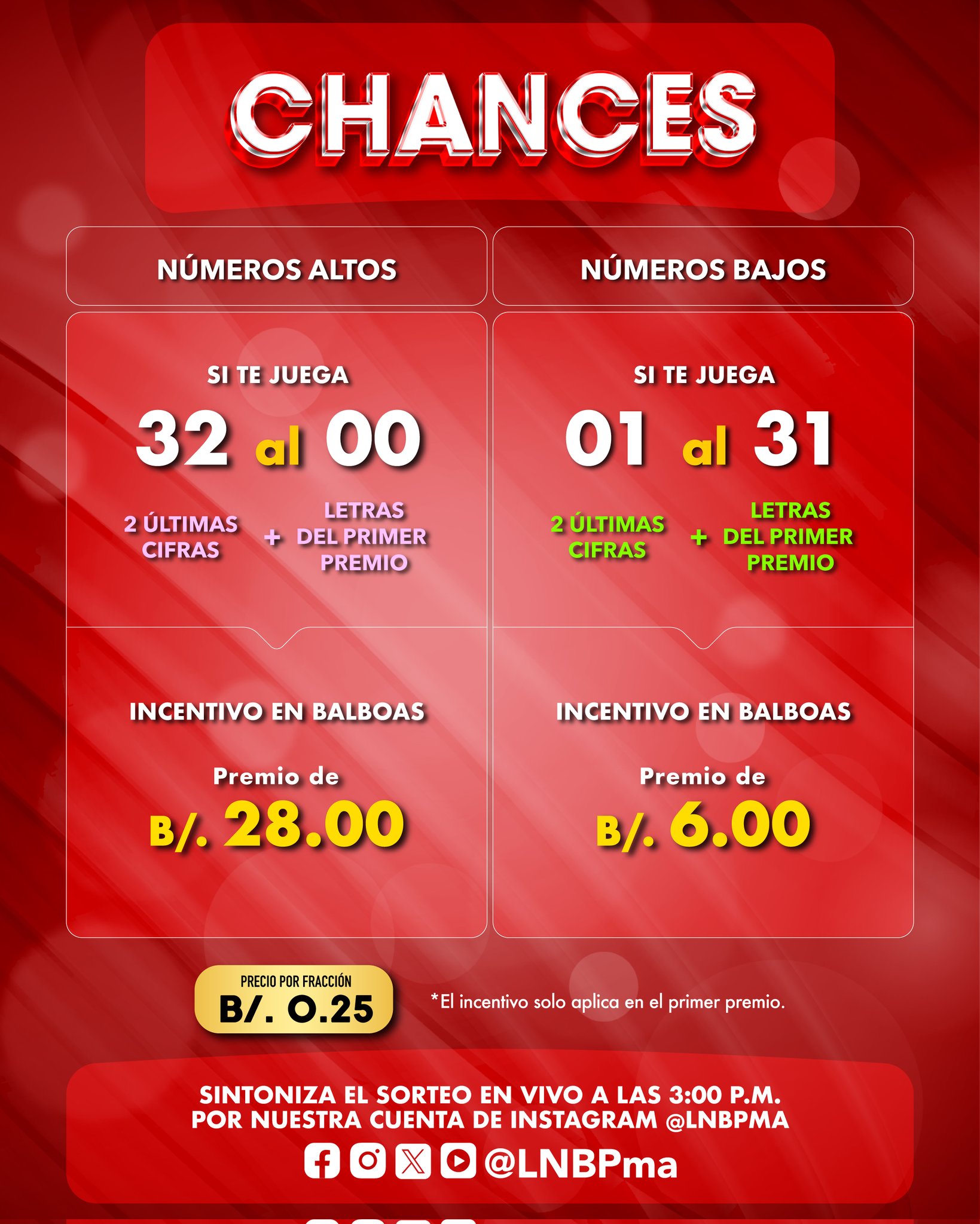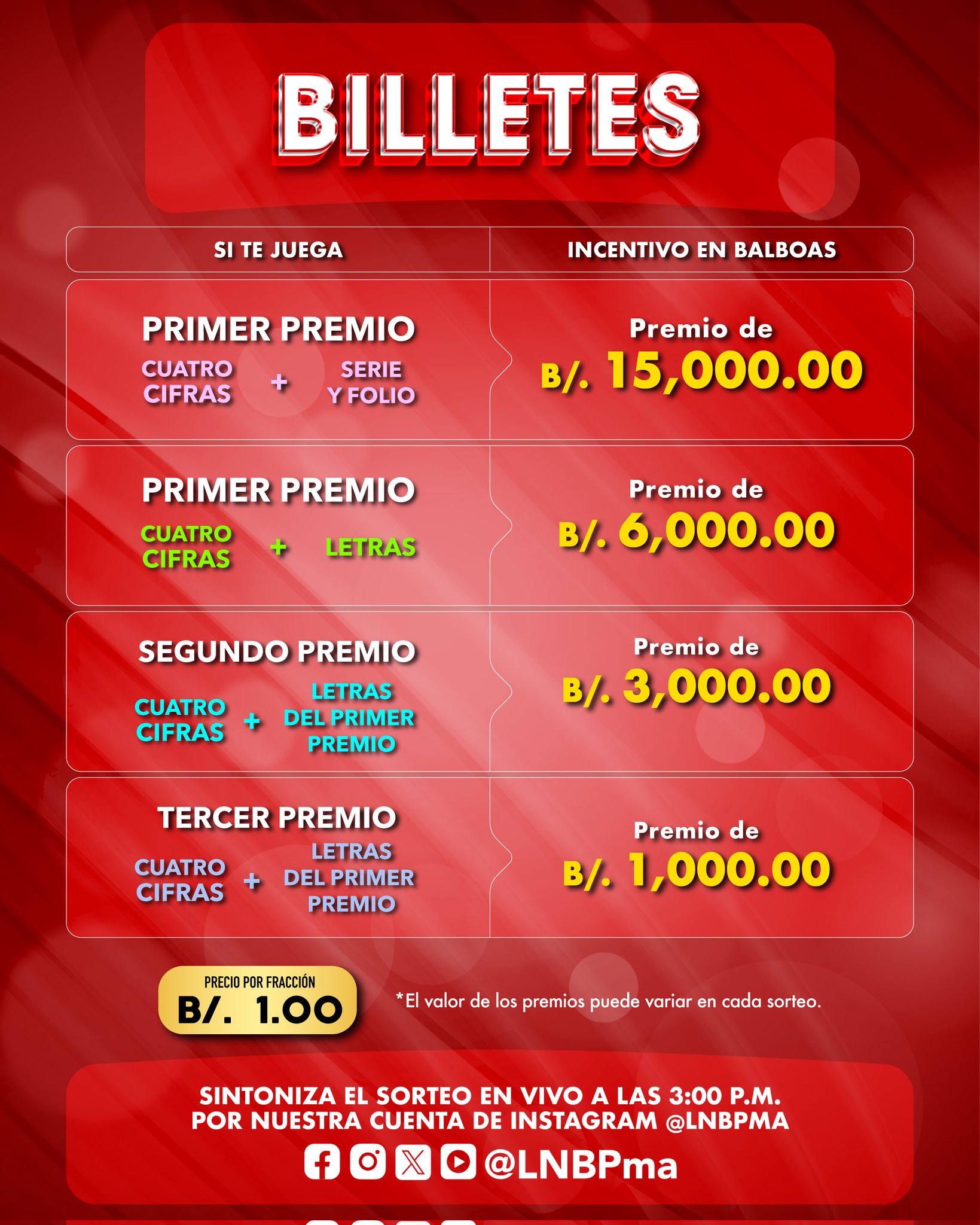 El sorteo dominical del 30 de febrero de 2025 de la Lotería Nacional de Beneficencia (LNB), comenzará a las 3:00 p.m.
