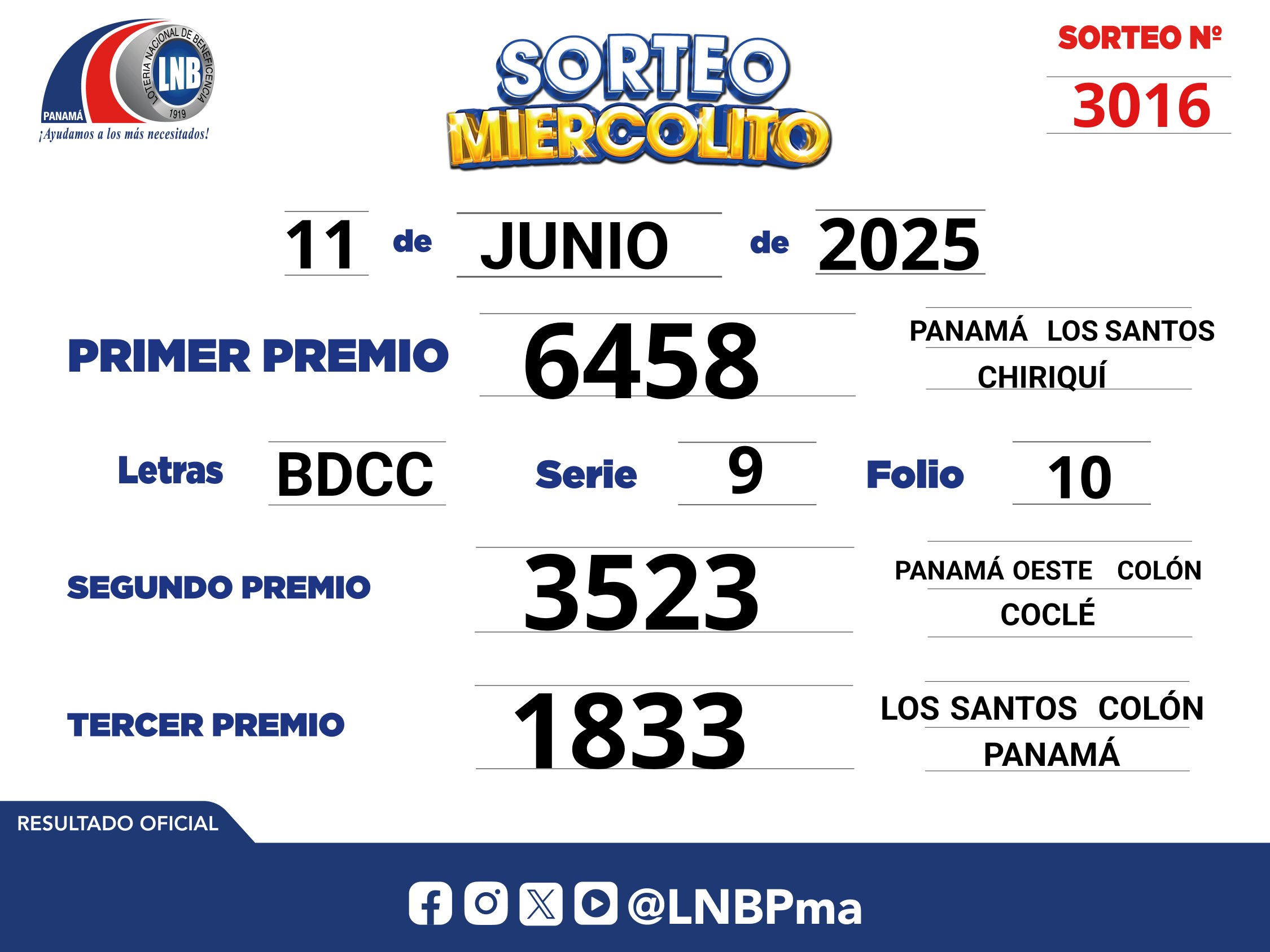 RESULTADOS DEL SORTEO MIERCOLITO DEL 11 DE JUNIO DE 2025