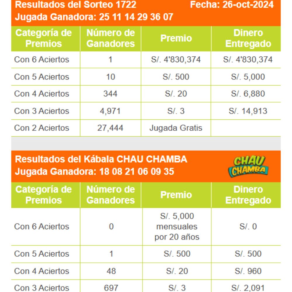 CHAU CHAMBA | Resultados del sábado 26 de octubre.